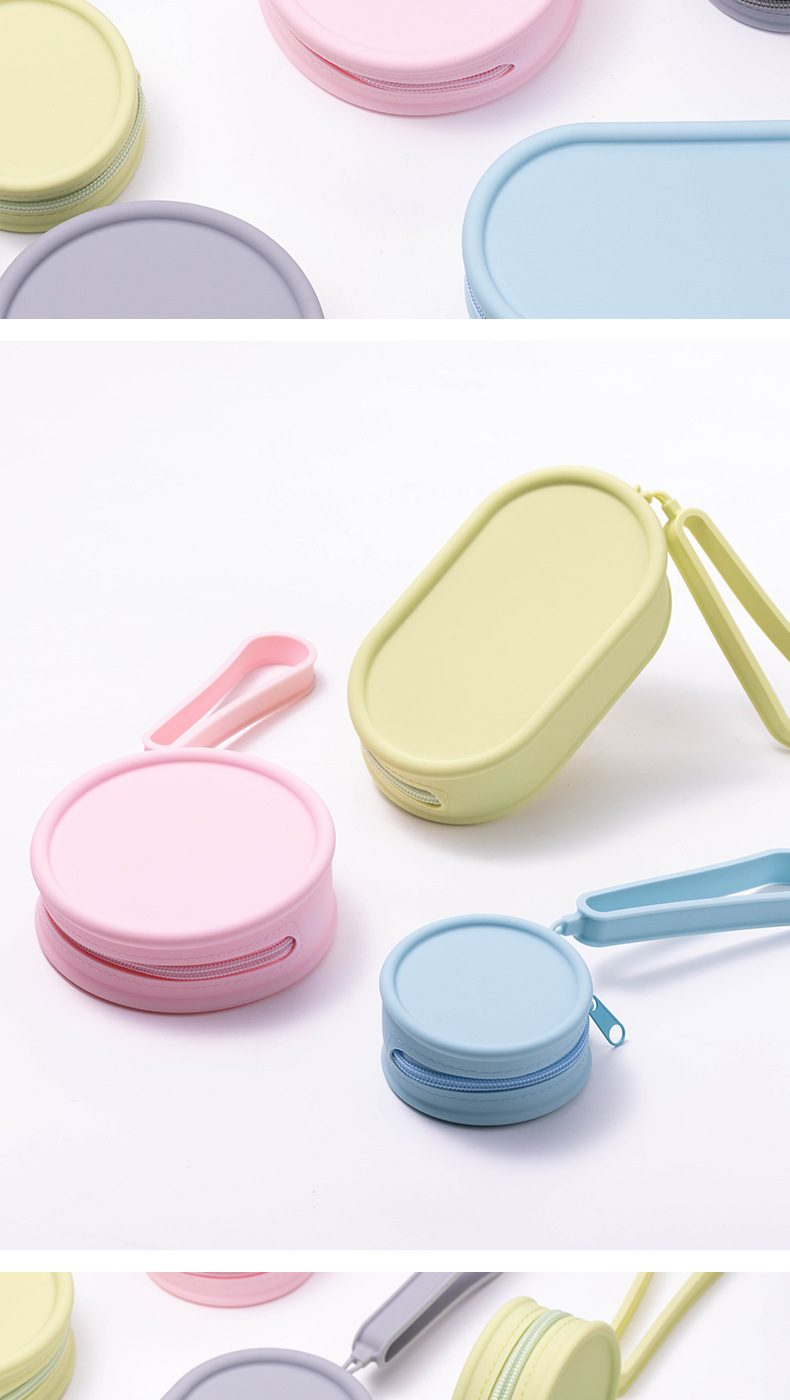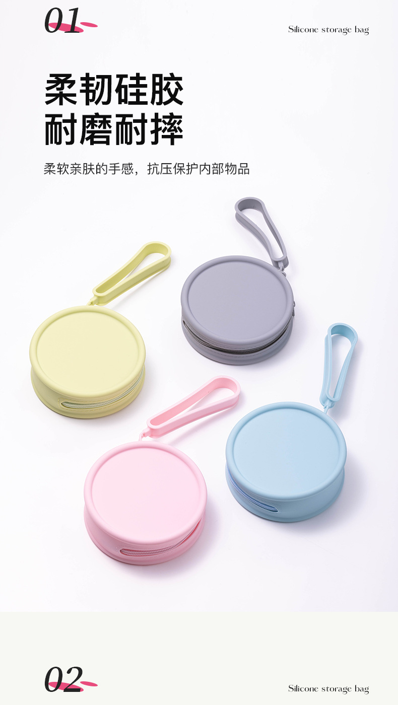 - 适用1:圆形硅胶零钱包简约耳机包小钱包硅胶包包手提收纳包定制