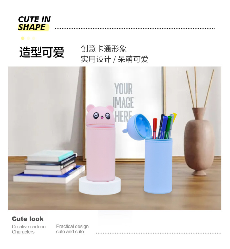 创意文具硅胶笔袋学生用品可伸缩卡通笔筒铅笔盒文具便携收纳盒
