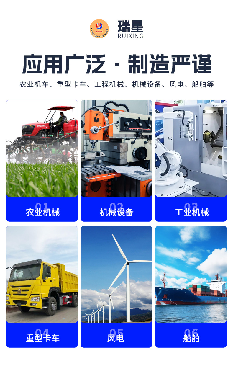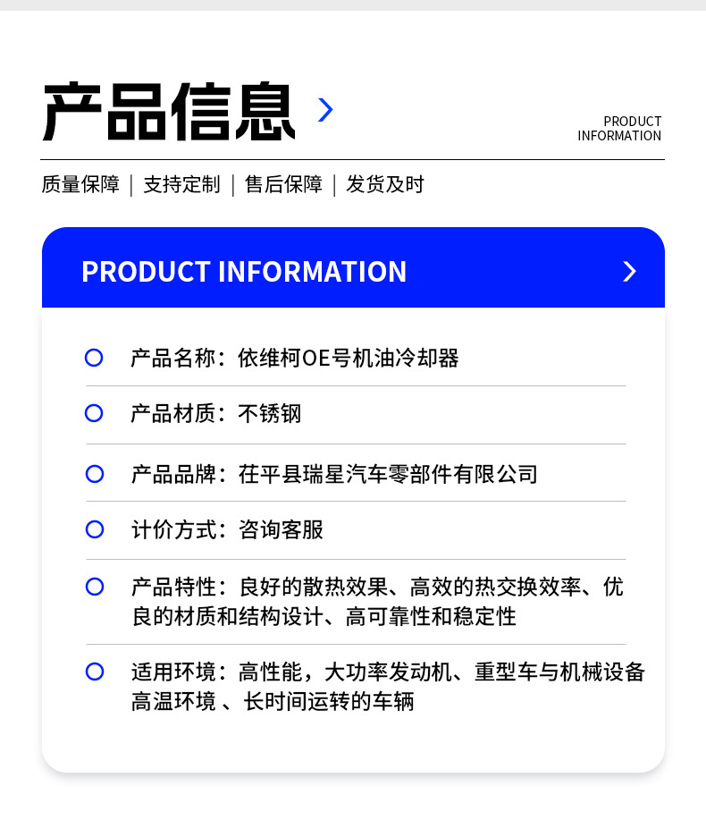 - 机油冷却器应用场景:机油冷却器应用于农用机车、汽车、工程机械、空气分离、液压传动、风电、船舶等