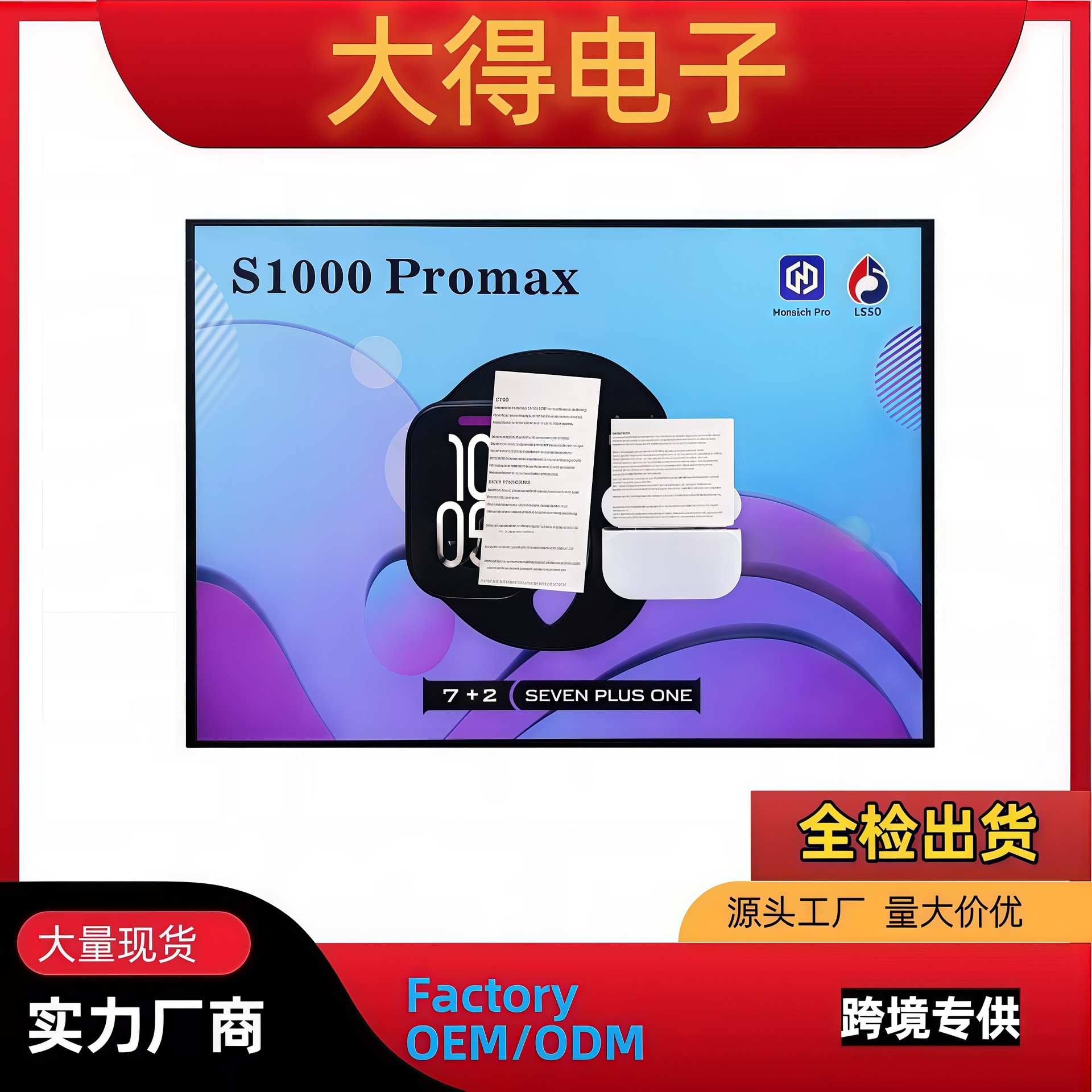 S1000ProMax智能手表蓝牙通话消息提醒运动记步多功能智能手表S10