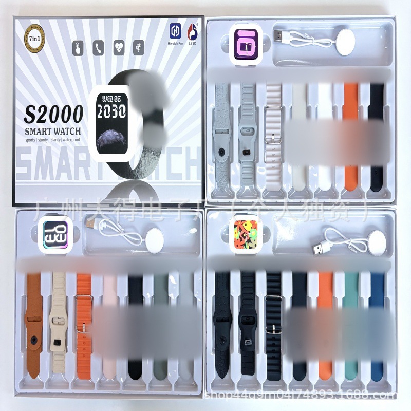 跨境爆款S2000智能手表套装蓝牙通话消息提醒运动记步7条表带礼品