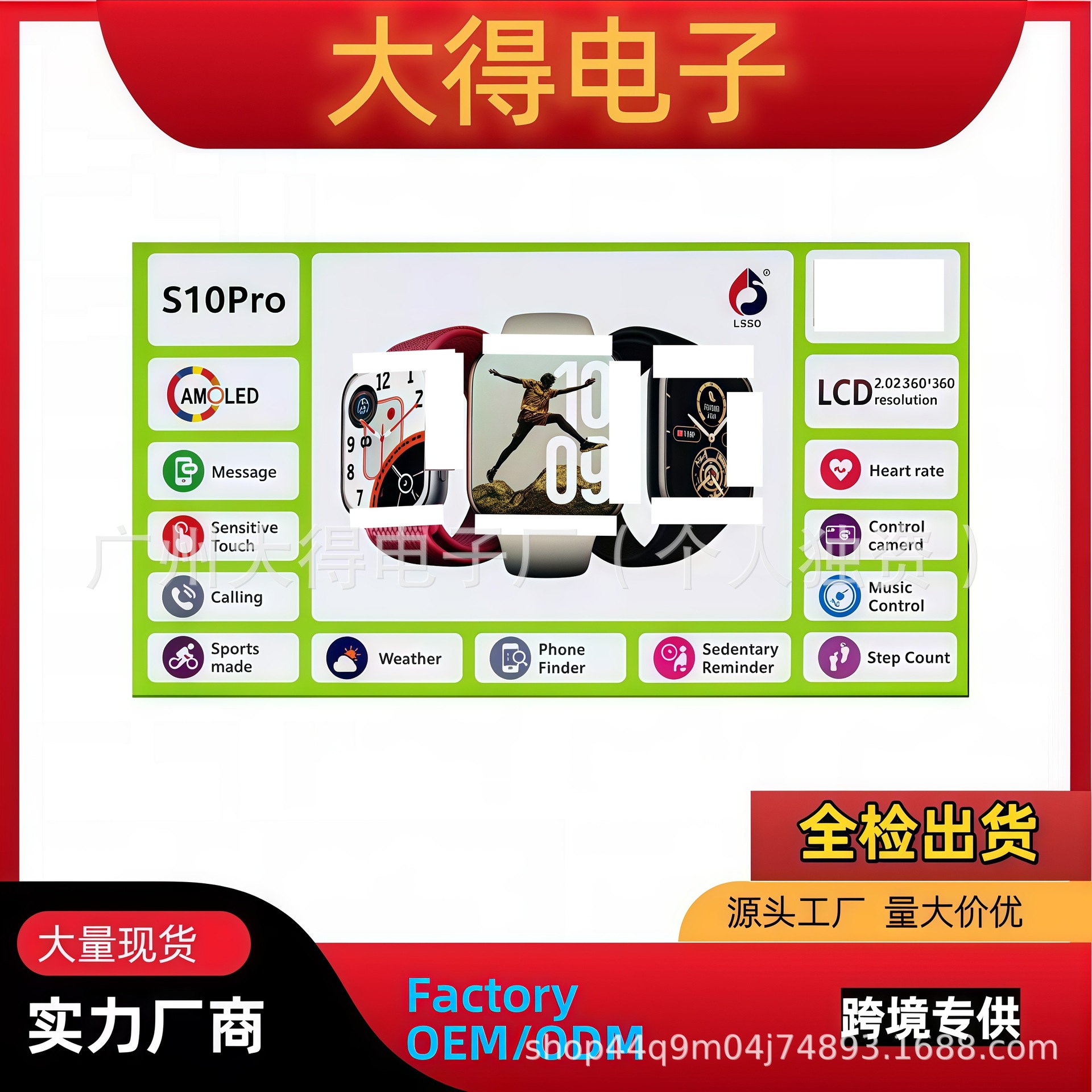 S10Pro智能手表新款跨境抖音直播心率血氧蓝牙通话运动离线支付