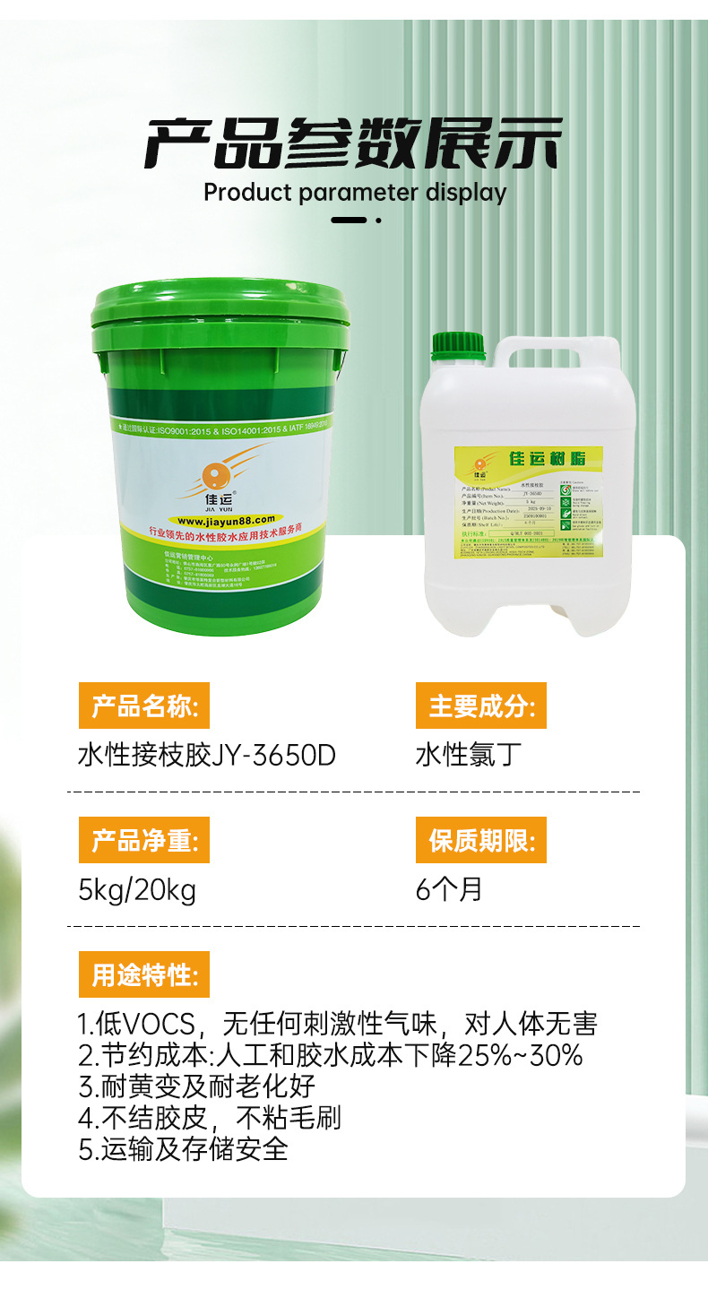- 规格:水性接枝胶JY-3650D