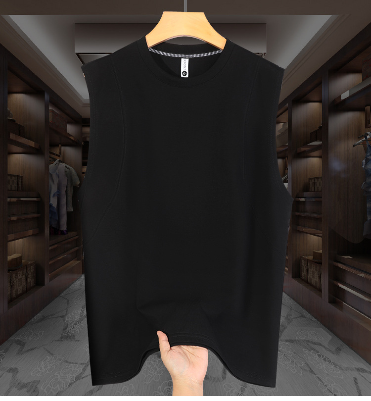 大码男士砍袖夏季上衣加肥加大宽松无袖T恤2024新款潮牌运动休闲