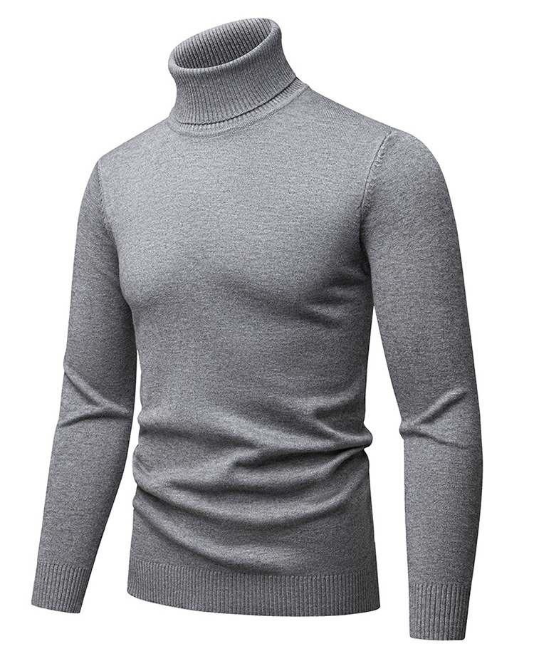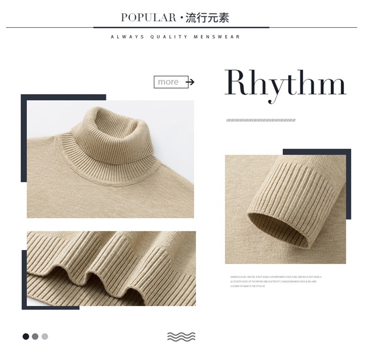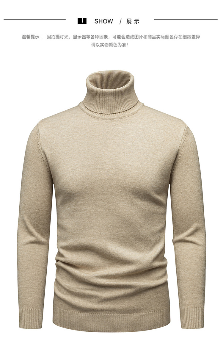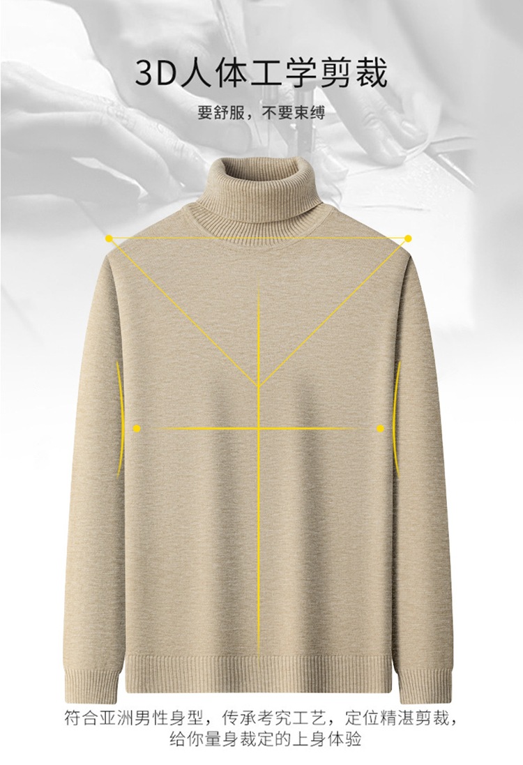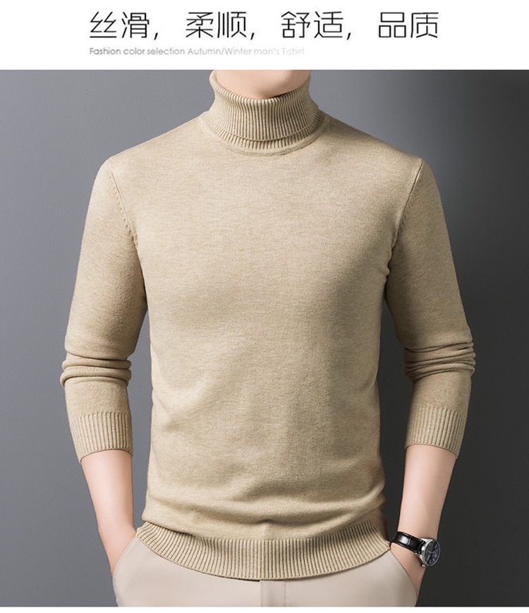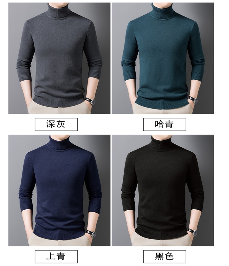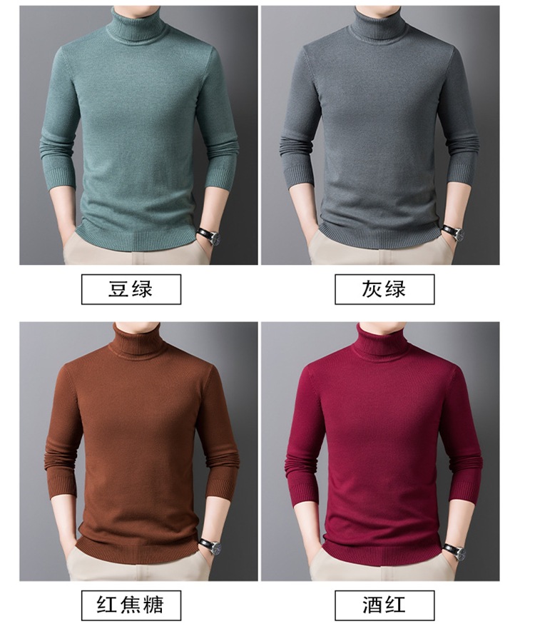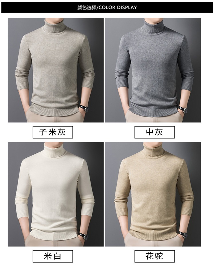 现货春秋季包芯纱高翻领毛衣男士休闲针织纯色打底衫上衣羊毛衫