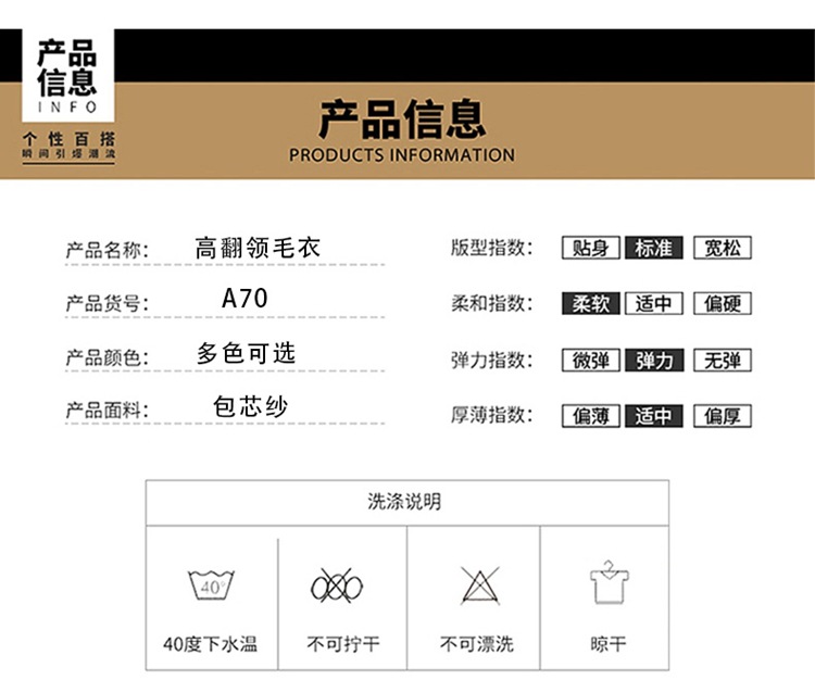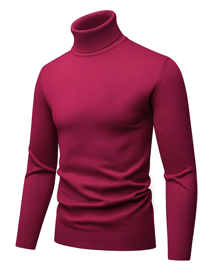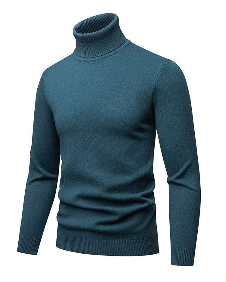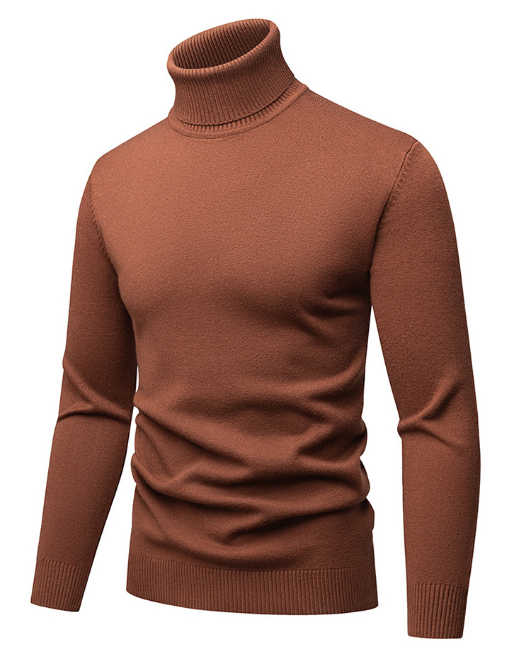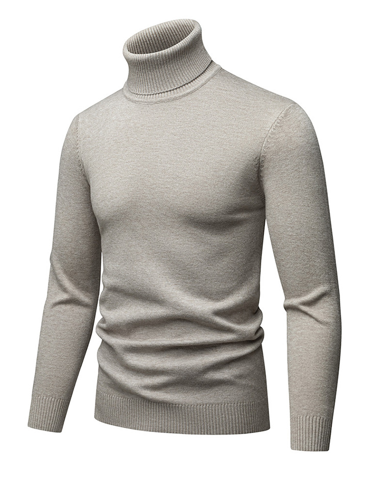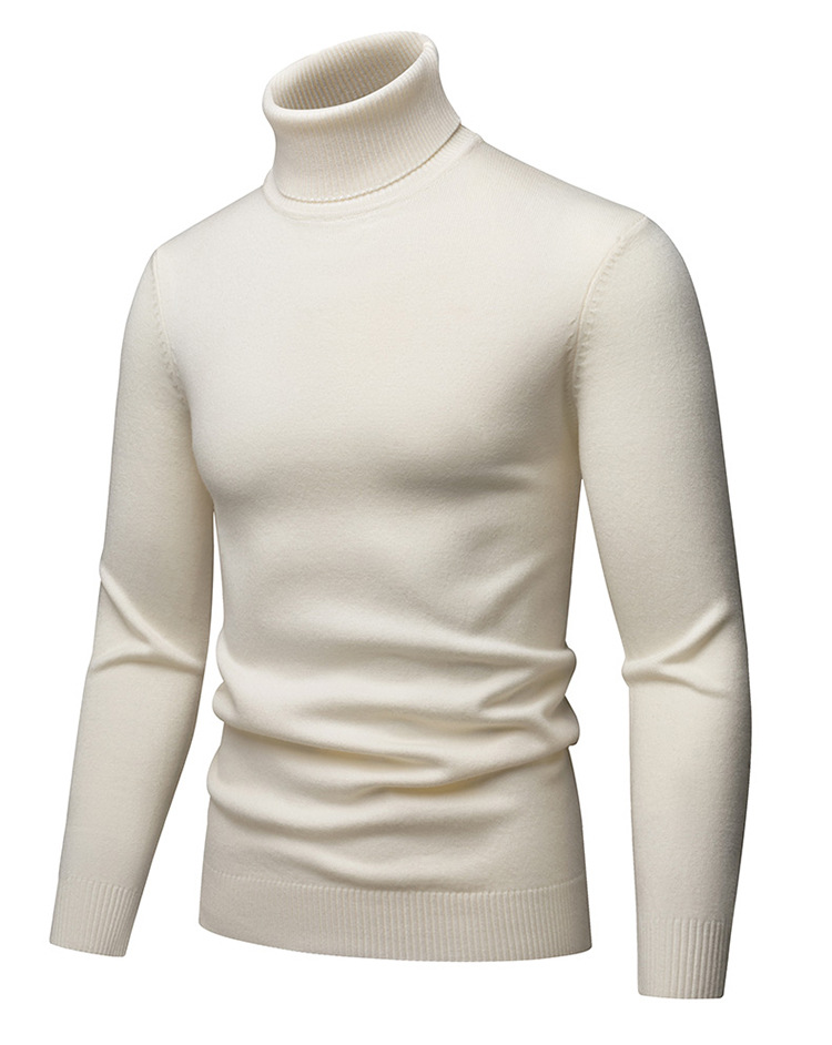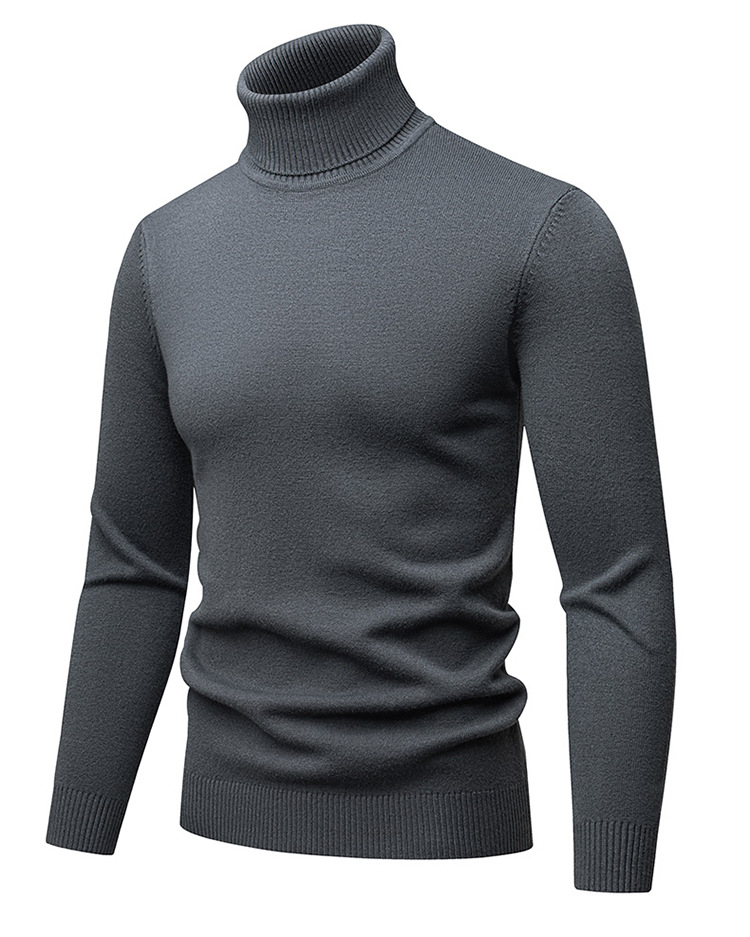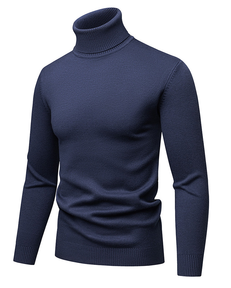 现货春秋季包芯纱高翻领毛衣男士休闲针织纯色打底衫上衣羊毛衫