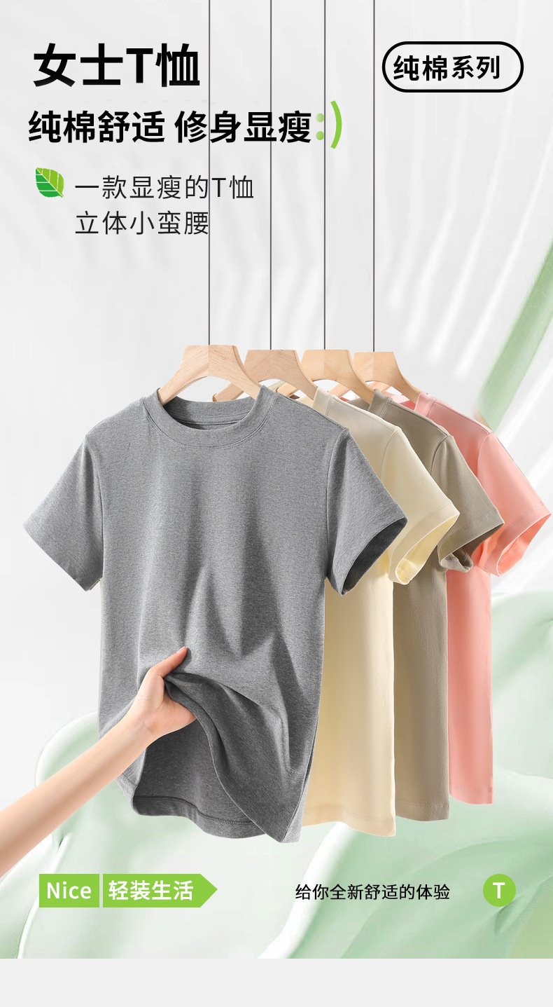 新款棉纯色圆领短袖T恤收腰显瘦女士上衣半袖亲肤多色t恤