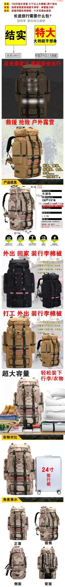 户外130升120大容量外出迷彩旅行包棉被行李打工登山露营防水背包