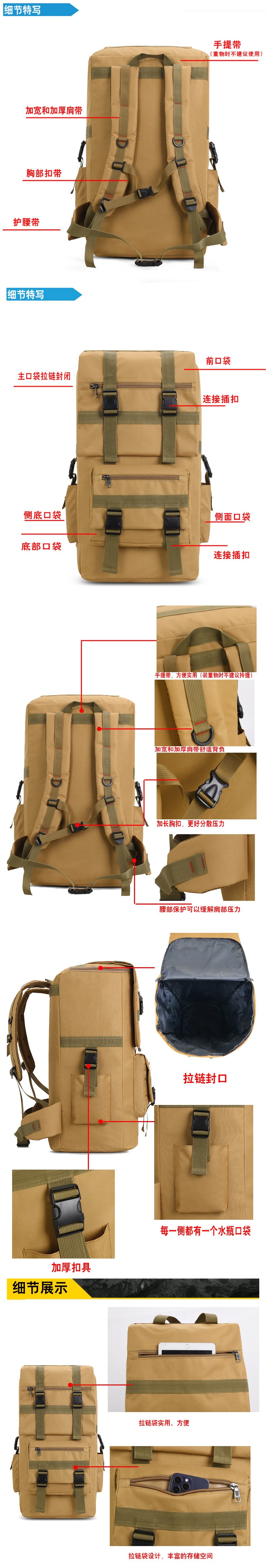 - 颜色:卡其(约60升适合开学训练旅行)