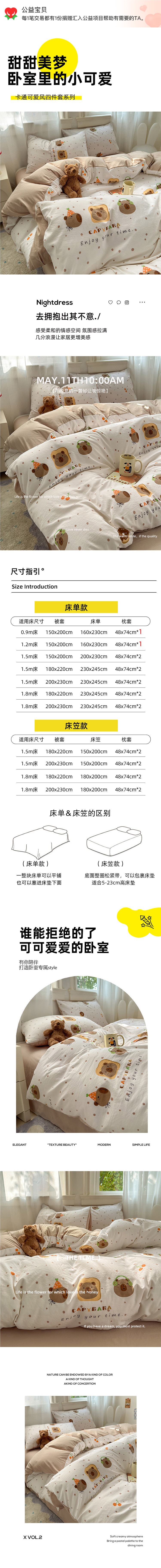 - 尺寸规格:1.2m床单款三件套:被套150*200cm