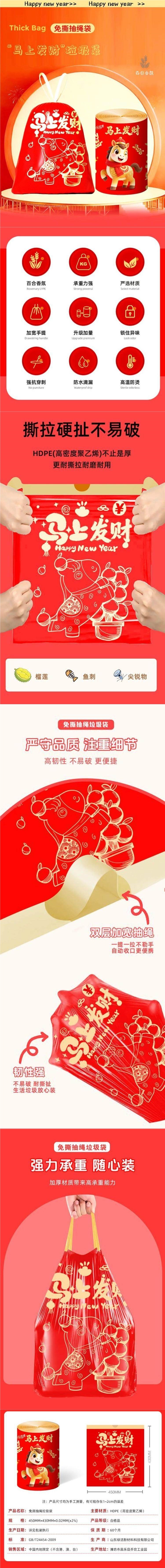 垃圾袋马上发财马年限定撕抽绳加厚手提家用自动收口厨房清洁袋