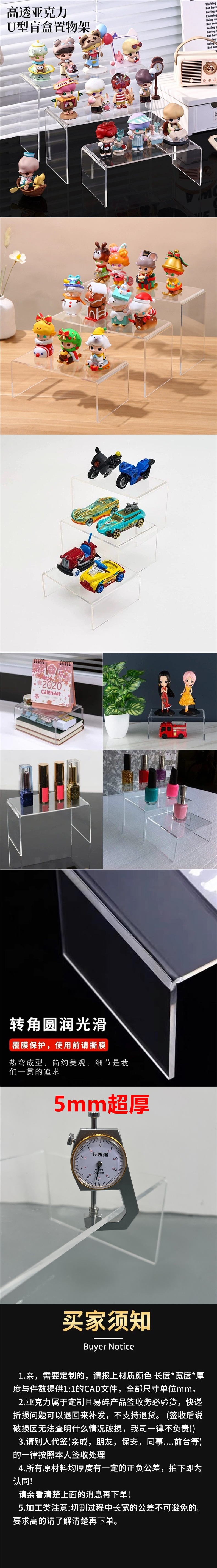 亚克力置物架桌面u型增高玩具模型收纳展示架透明分层架隔板现货