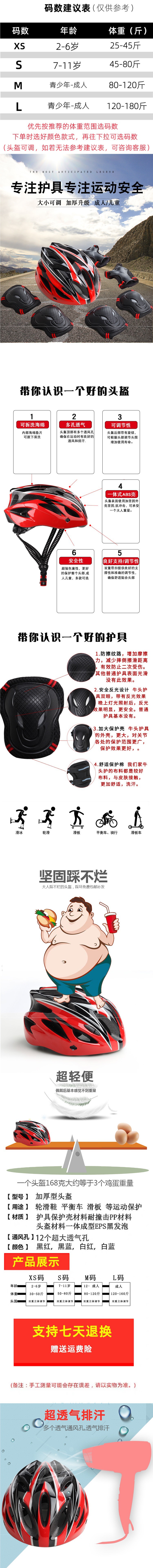 - 颜色:黑白【可调头盔+护具】-S(7-11岁)