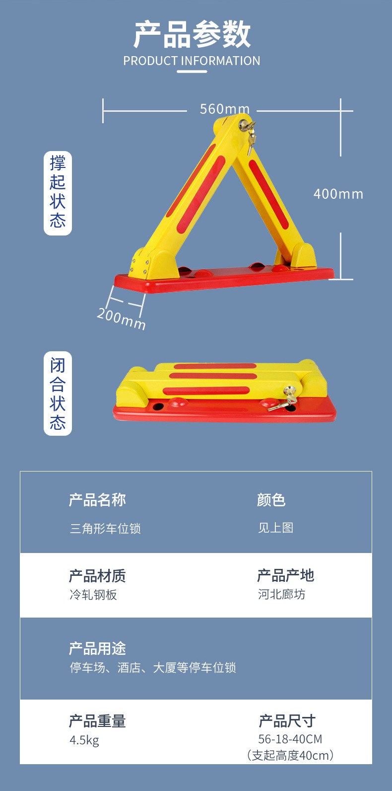 A型锁阻车器三角形车位锁防撞停车桩占位地锁免打孔车位挡车器