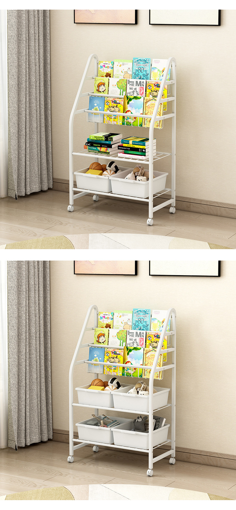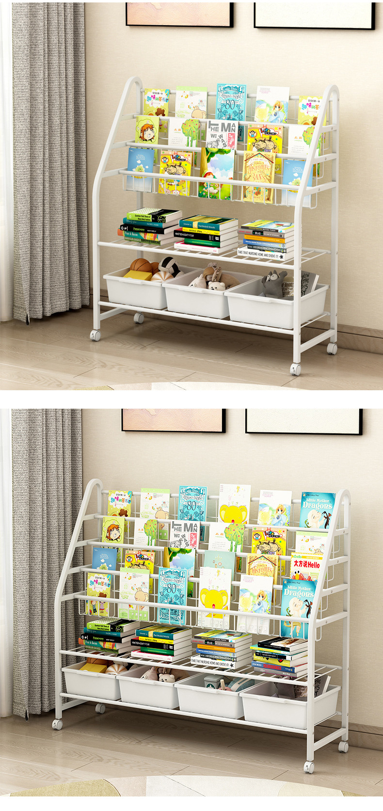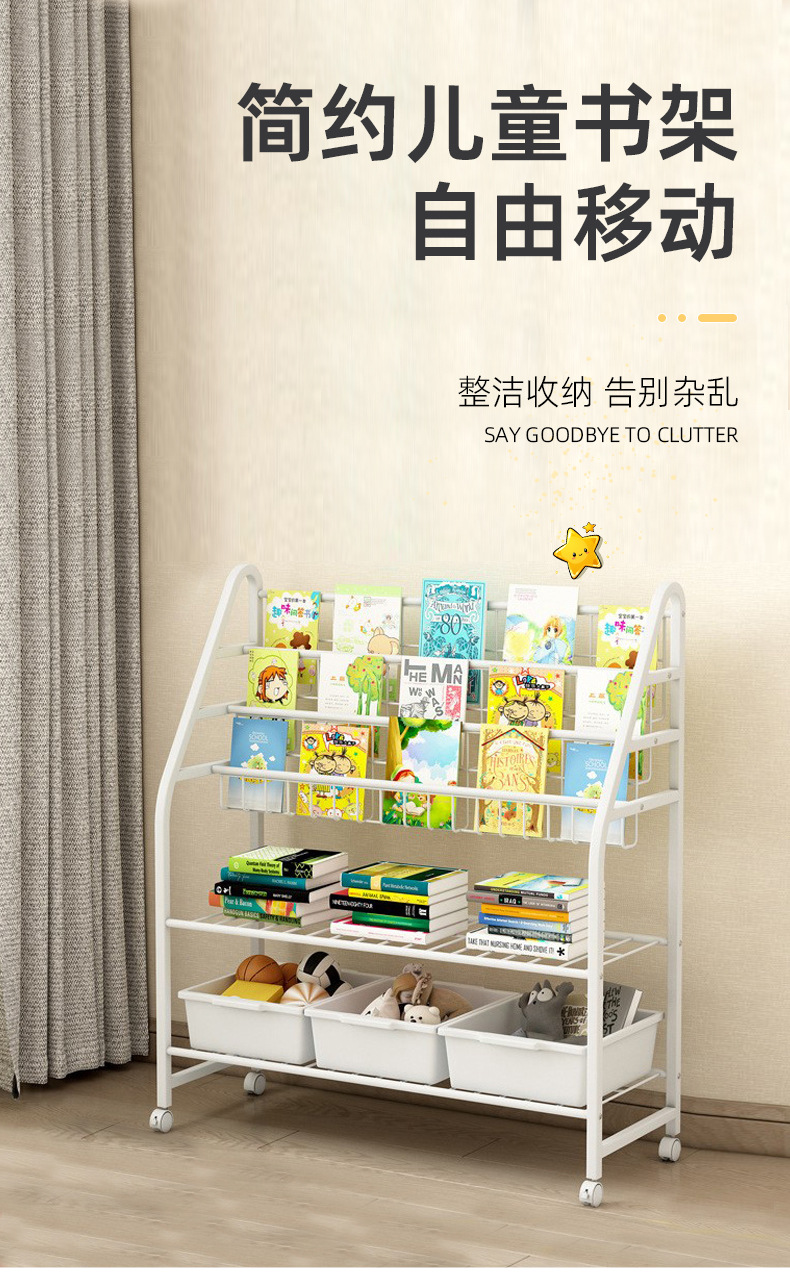 儿童书架铁艺落地学生书籍收纳架绘本架玩具二合一置物架可移动