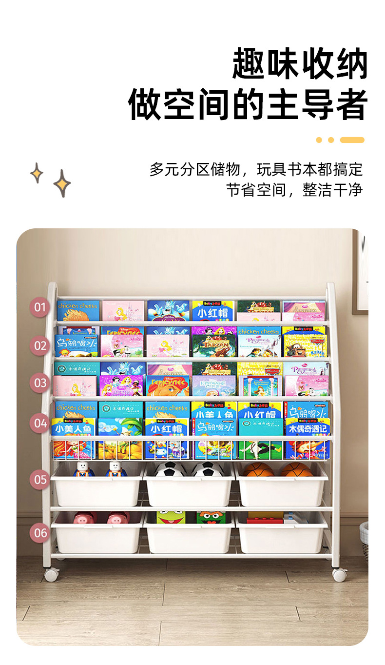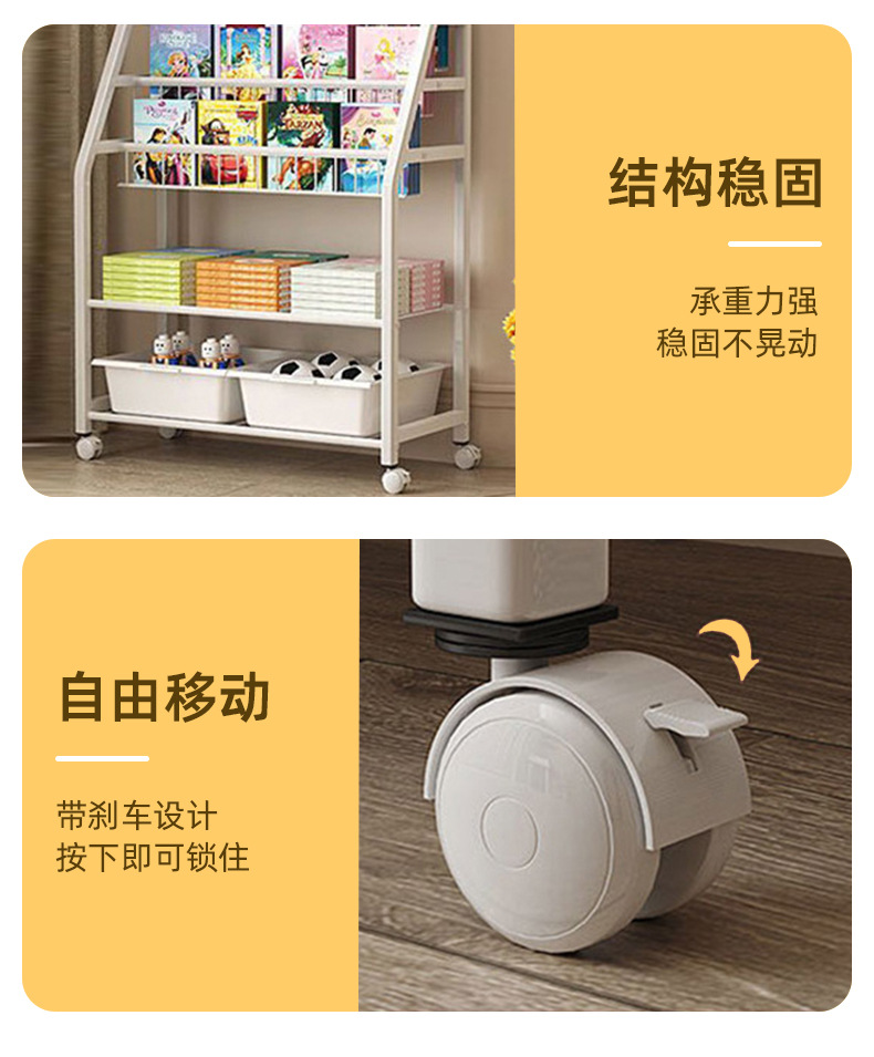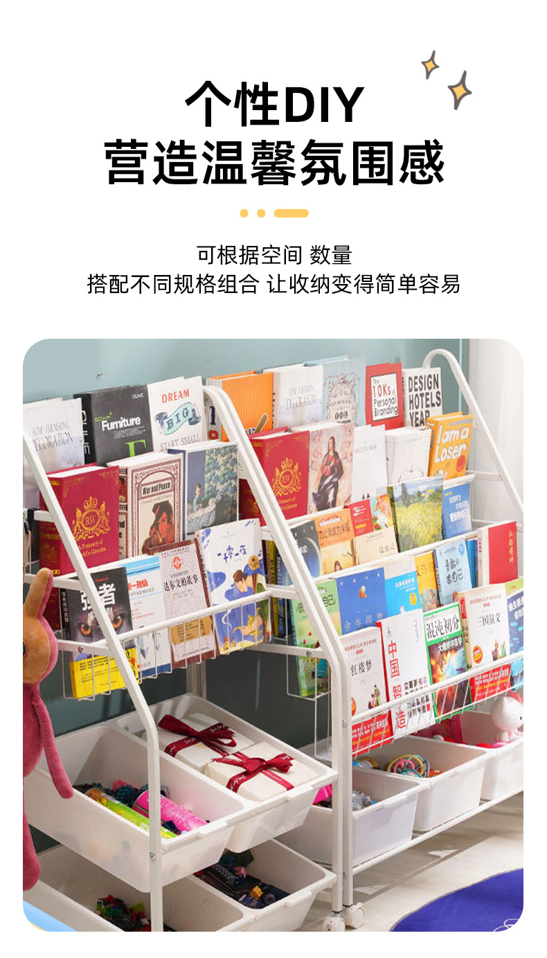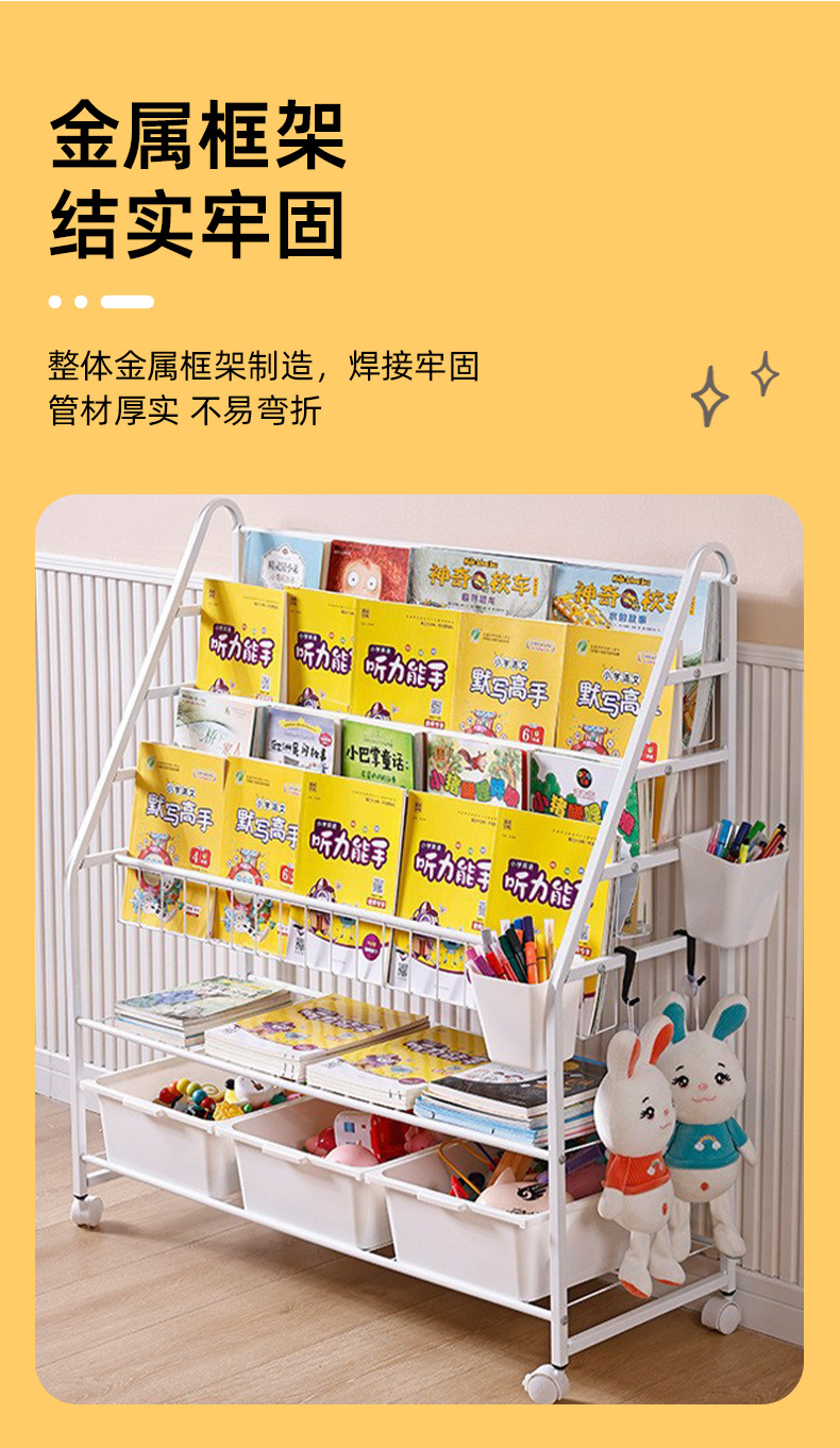 儿童书架铁艺落地学生书籍收纳架绘本架玩具二合一置物架可移动