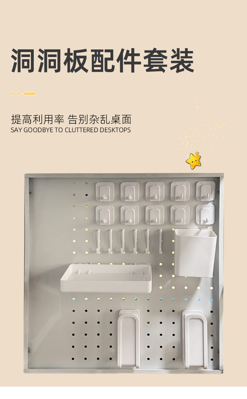 洞洞板装饰配件挂板免打孔小挂钩圆孔桌面书桌墙上收纳置物架