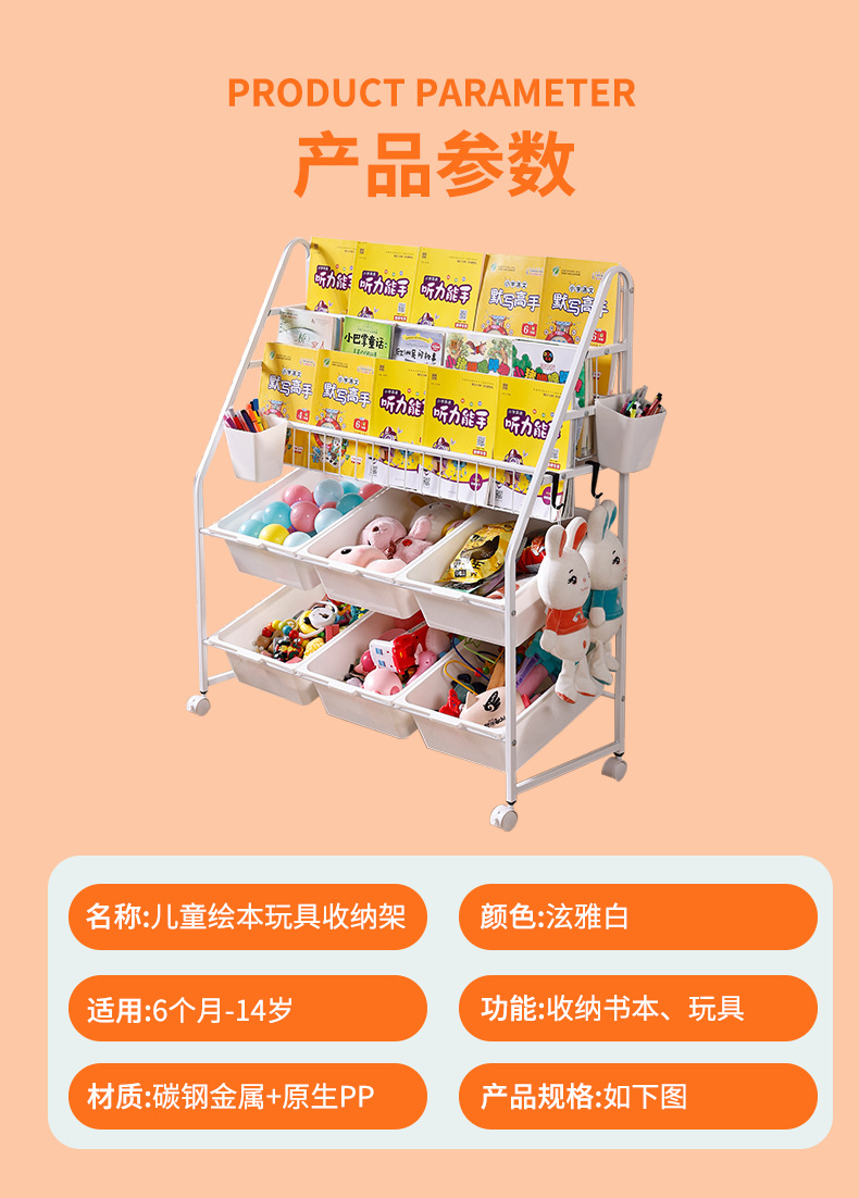 - 颜色:L3层绘本2层收纳架4个收纳盒(无挂桶)