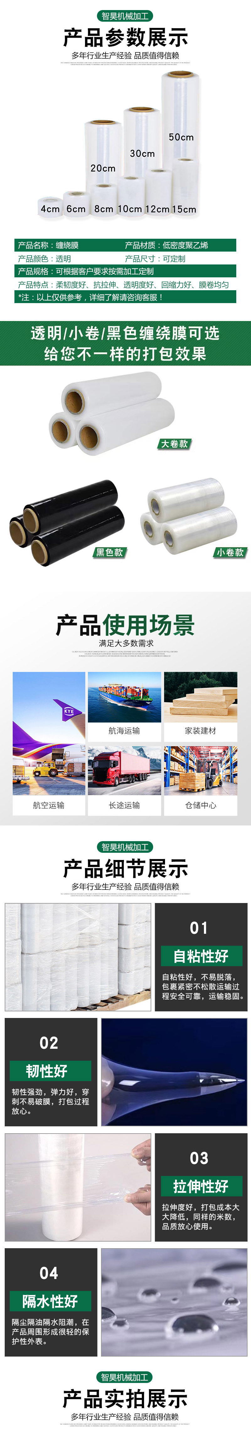 缠绕膜拉伸PE透明缠绕膜物流打包塑料拉伸膜自粘工业包装手用缠绕