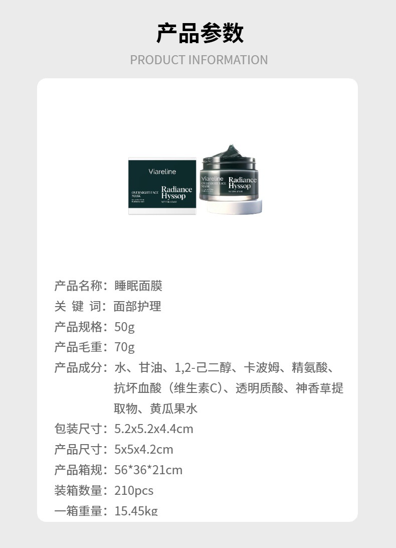 VIARELINE 睡眠面膜 温和配方滋润面部肌肤日常清洁皮肤睡眠面膜