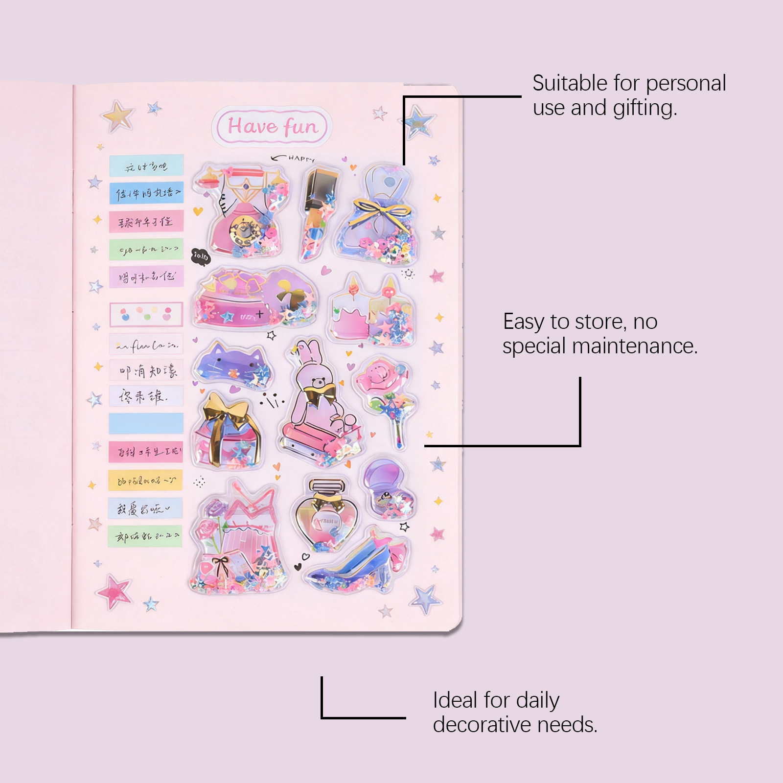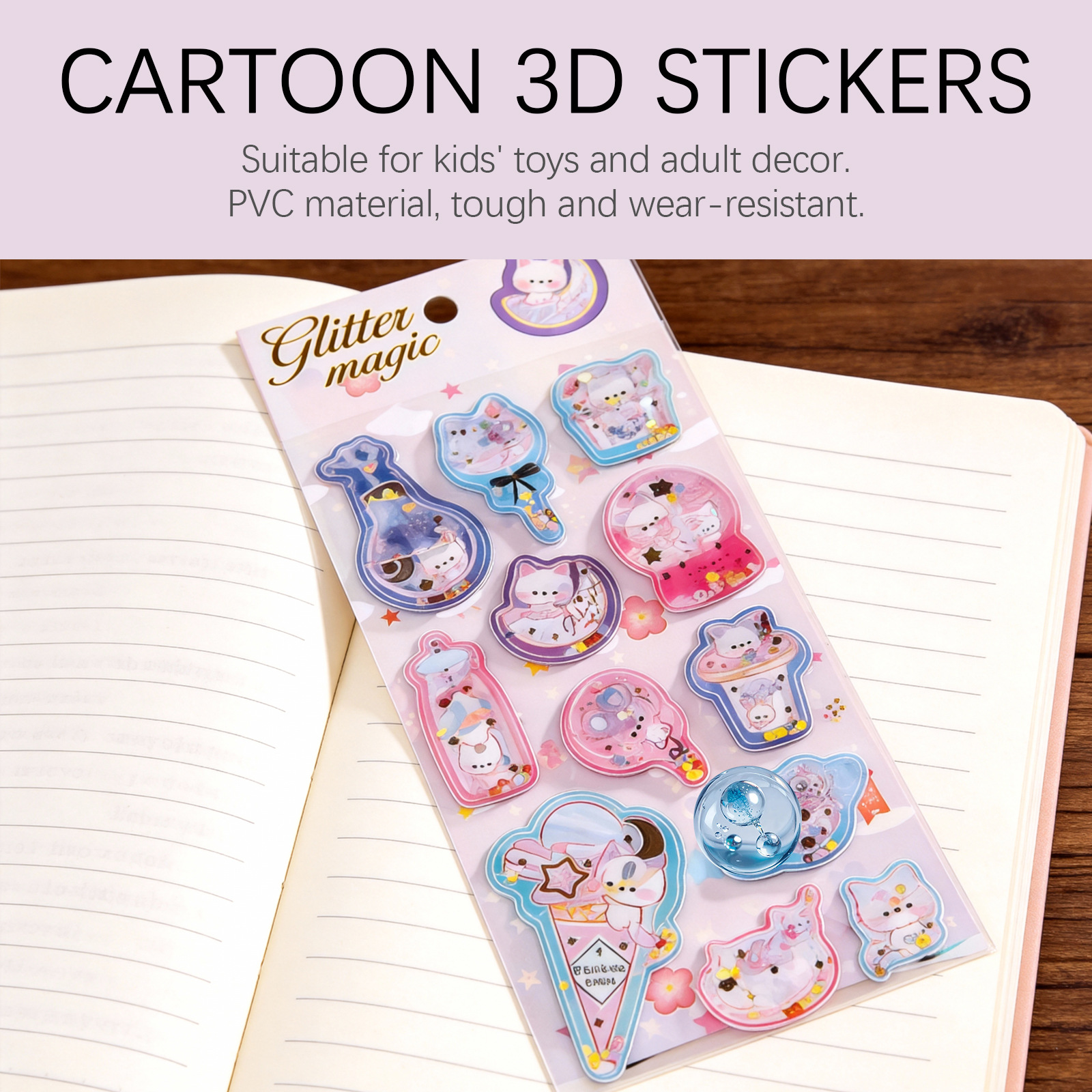 卡通立体摇摇贴 PVC材质多种可爱造型柔和小清新配色手账装饰贴纸