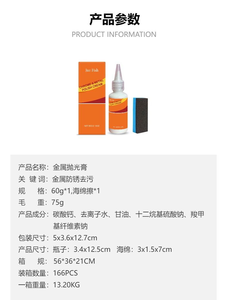JUE FISH 金属抛光膏 防锈去污养护光泽轻松护理不锈钢铝制品表面