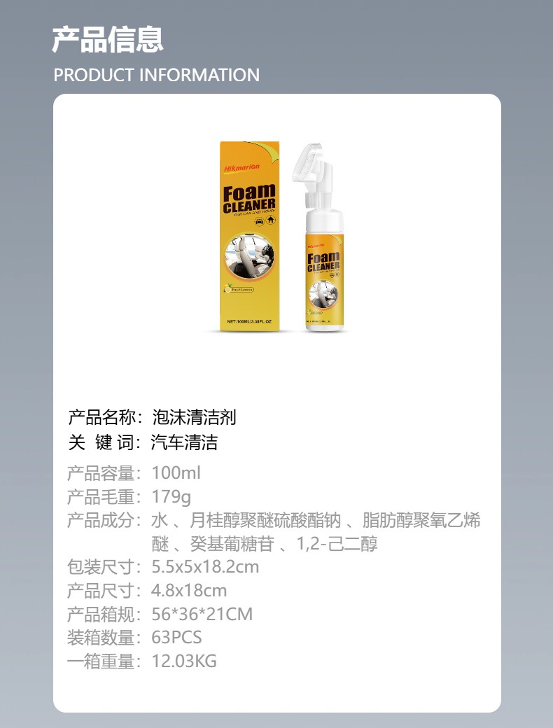Hikmarion 泡沫清洁剂 日常翻新清洁去污汽车内饰座椅增亮清洗剂