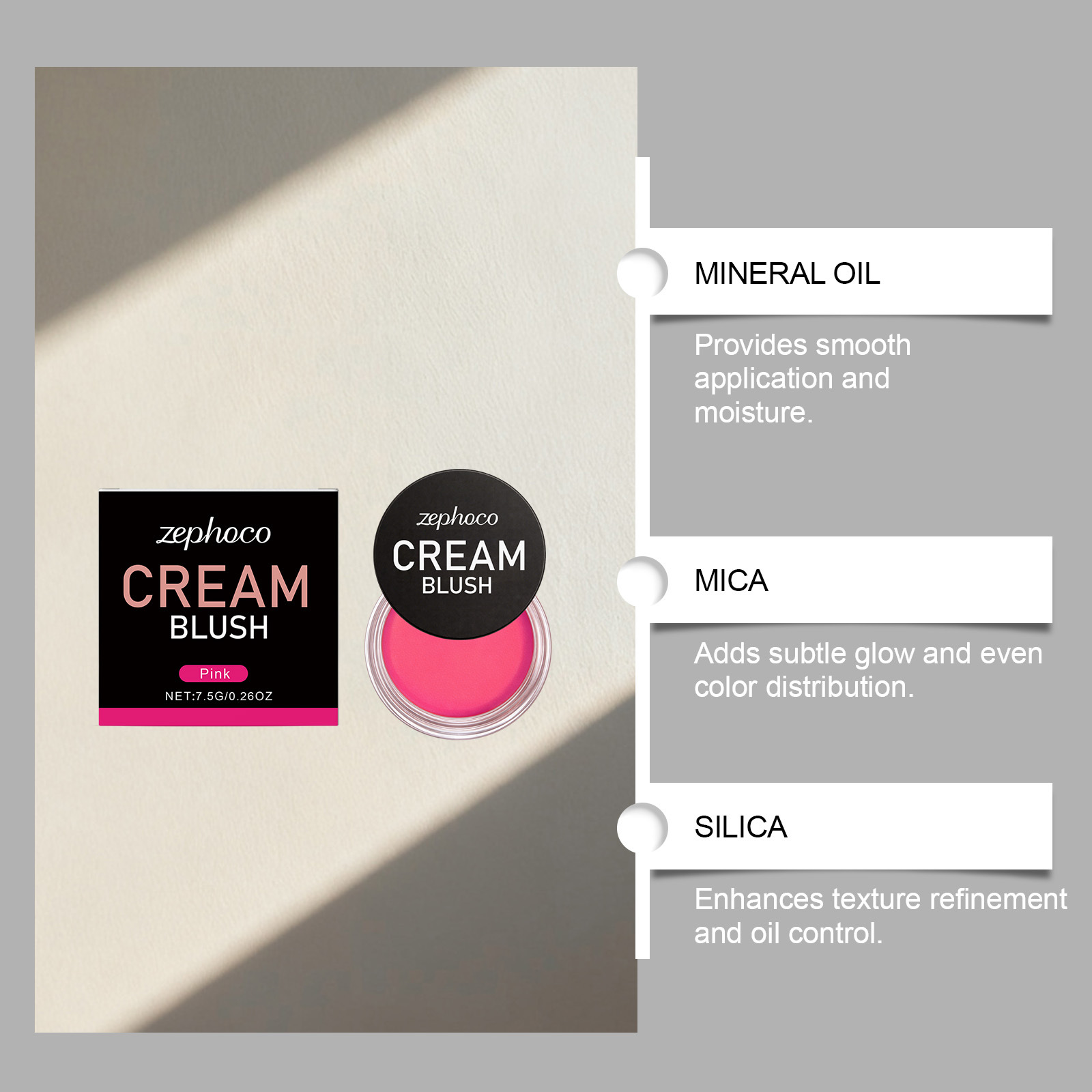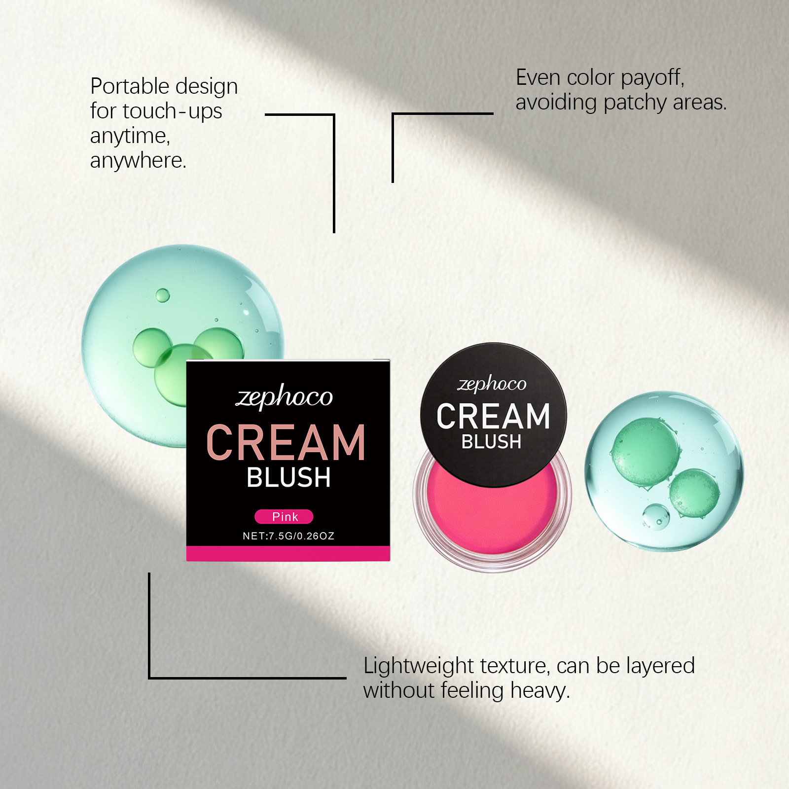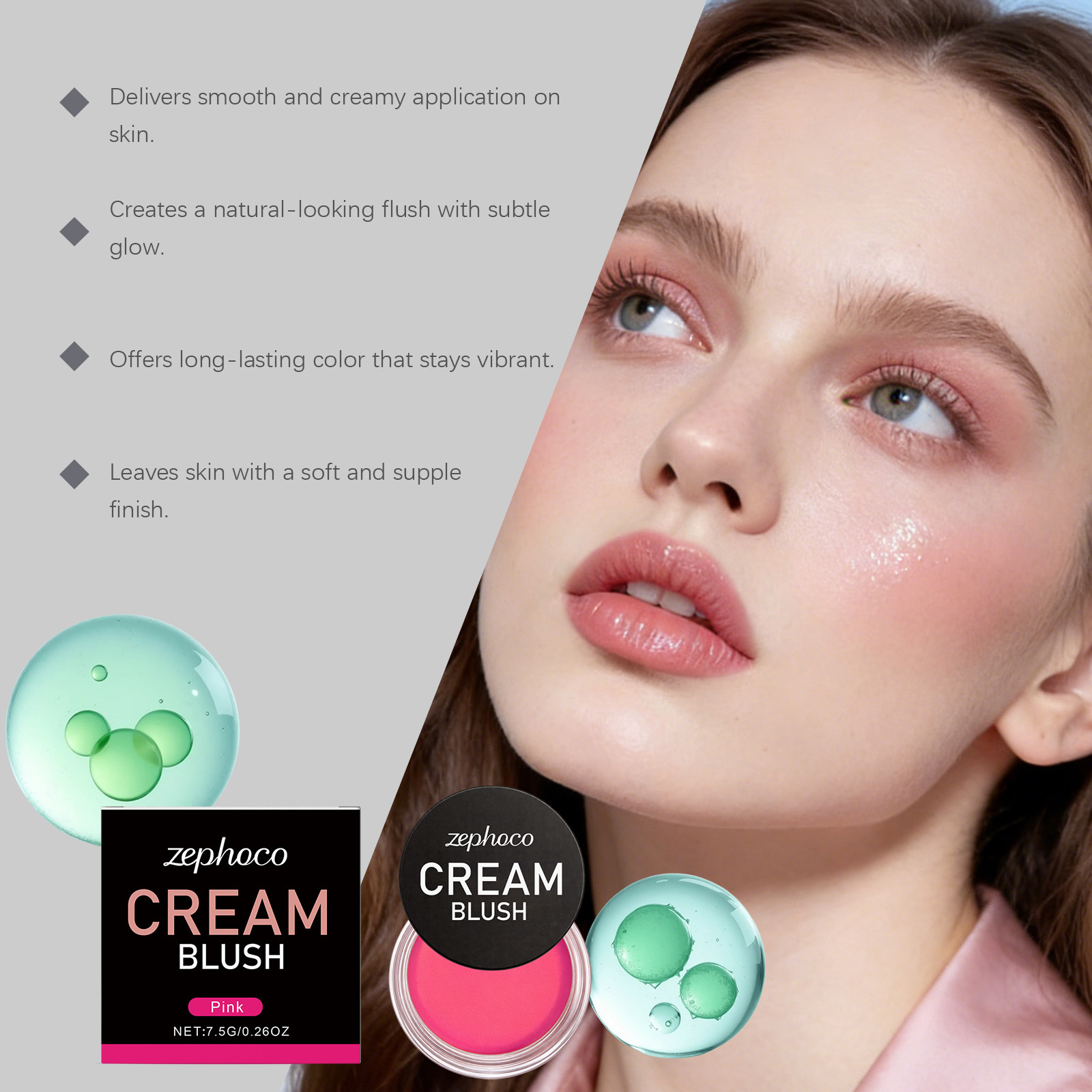 zephoco 粉色丝滑润肤腮红 自然肤感妆容元气柔滑日常彩妆腮红