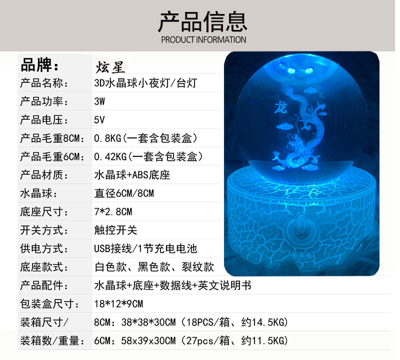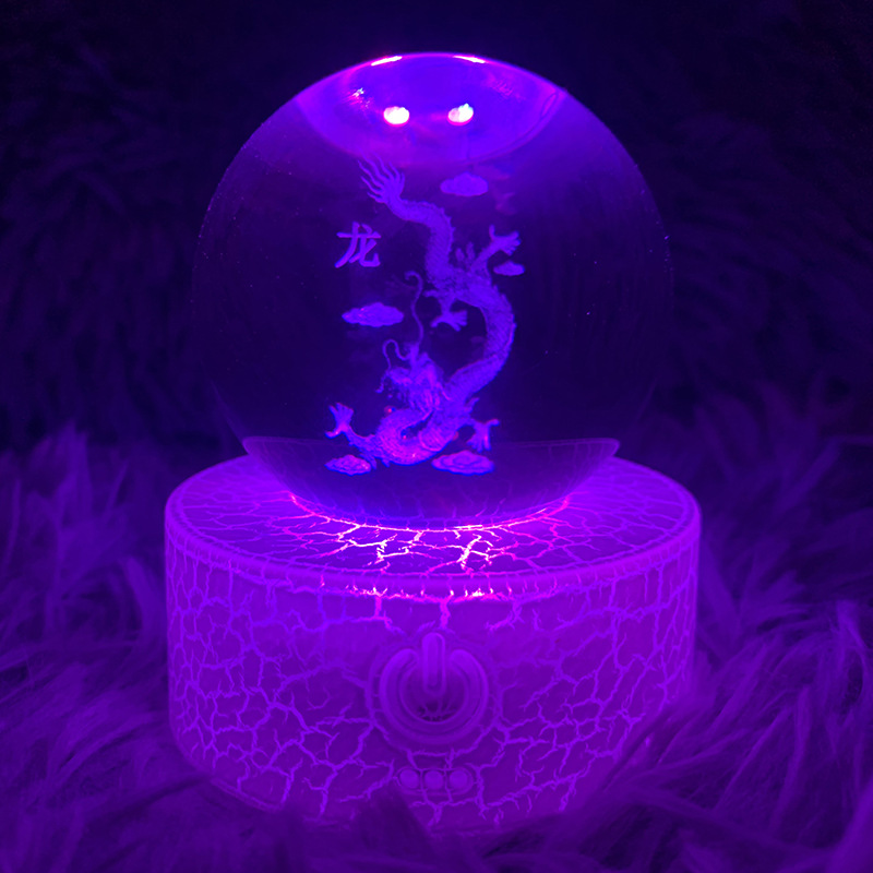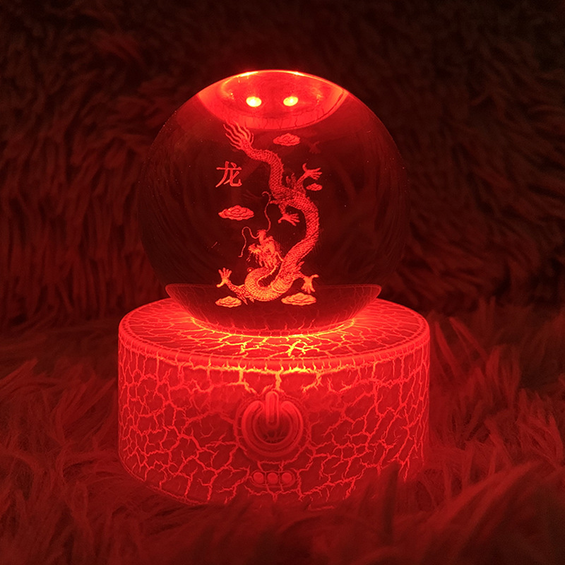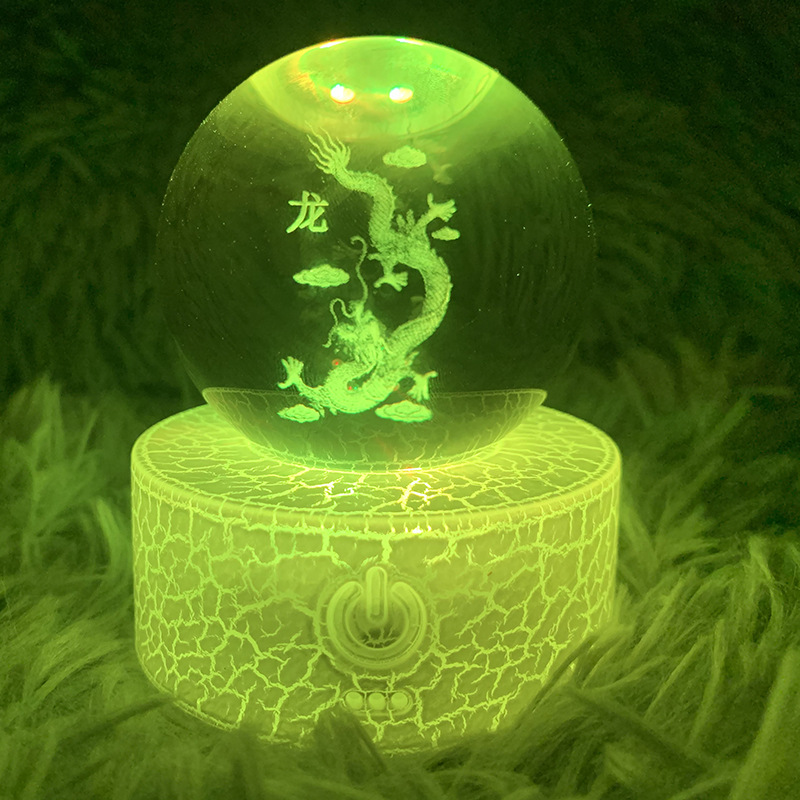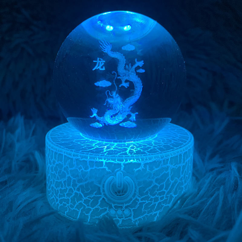厂家直供水晶球遥控七彩充电台灯发光底座水晶球创意摆件水晶球底