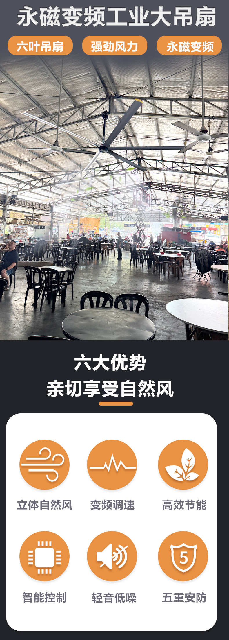工业大吊扇车间饭店大排档通风降温用大型工业风扇永磁工业吊扇