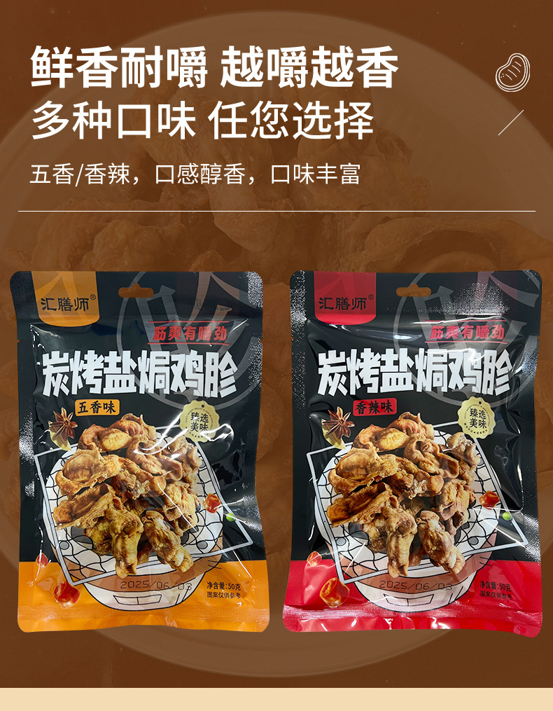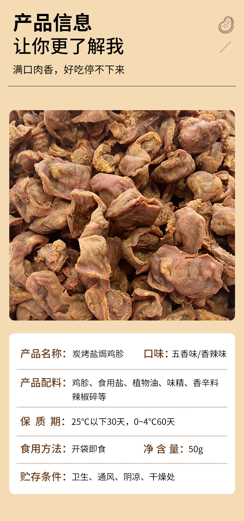 盐焗鸡胗果木炭烤风干开袋即食解馋零食50g两种口味解腻小零食